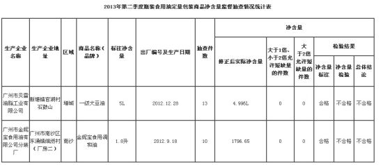 广州质监局二季度抽检:金妮宝食用油等品牌食品上黑榜